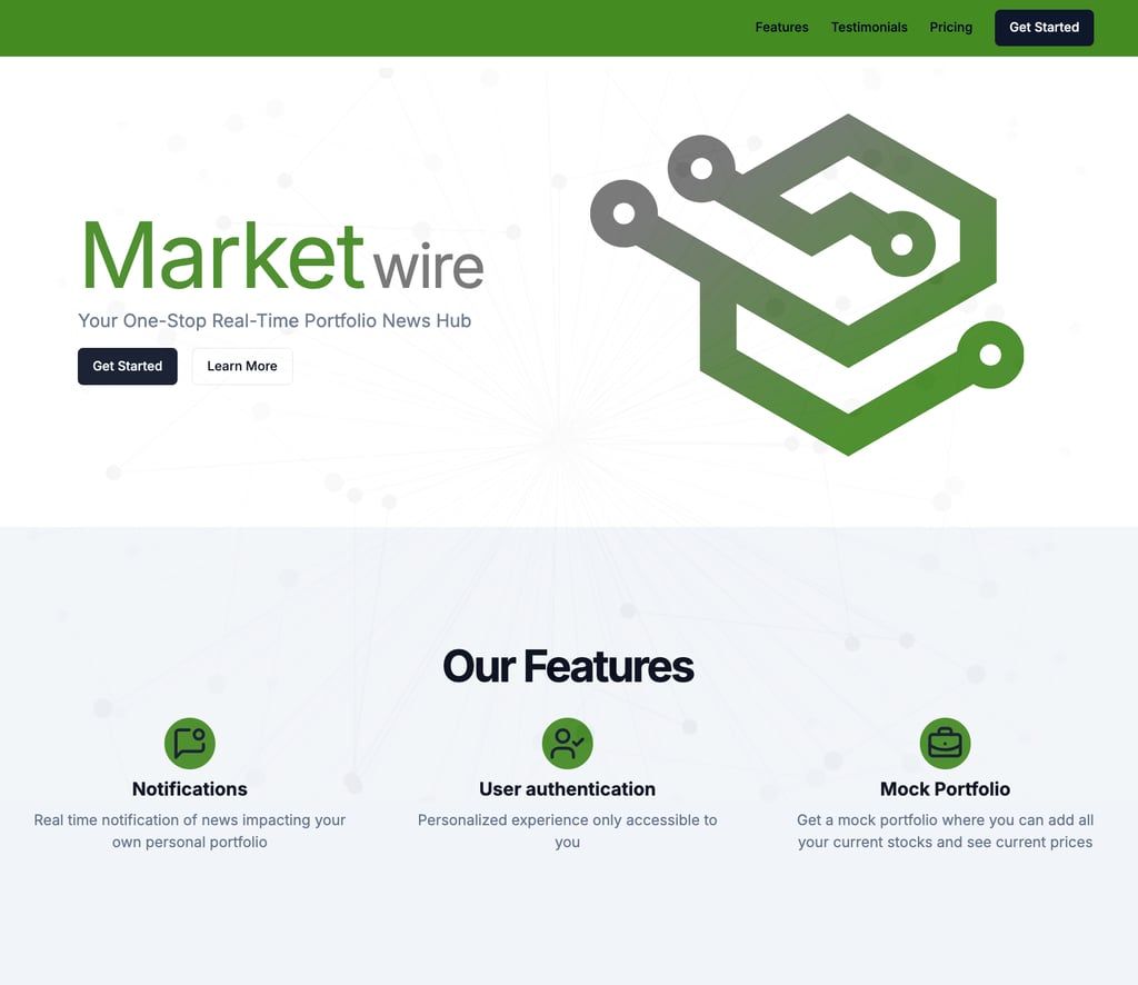 I built Marketwire, a production-grade, end-to-end platform to simplify smart investing. Marketwire analyzes news-driven sentiment in real time to send instant alerts, advising users when to buy or sell for maximum profit. With user consent, transactions can be automated for optimal execution. Combining personalized real-time trends, stock insights, and company research, Marketwire keeps users ahead of market dynamics. Built with Python’s FastAPI, Beautiful Soup for web scraping, the FinBERT NLP sentiment classifier, Supabase, Redis, Celery, and a Next.js frontend using React, TypeScript, and Tailwind CSS.